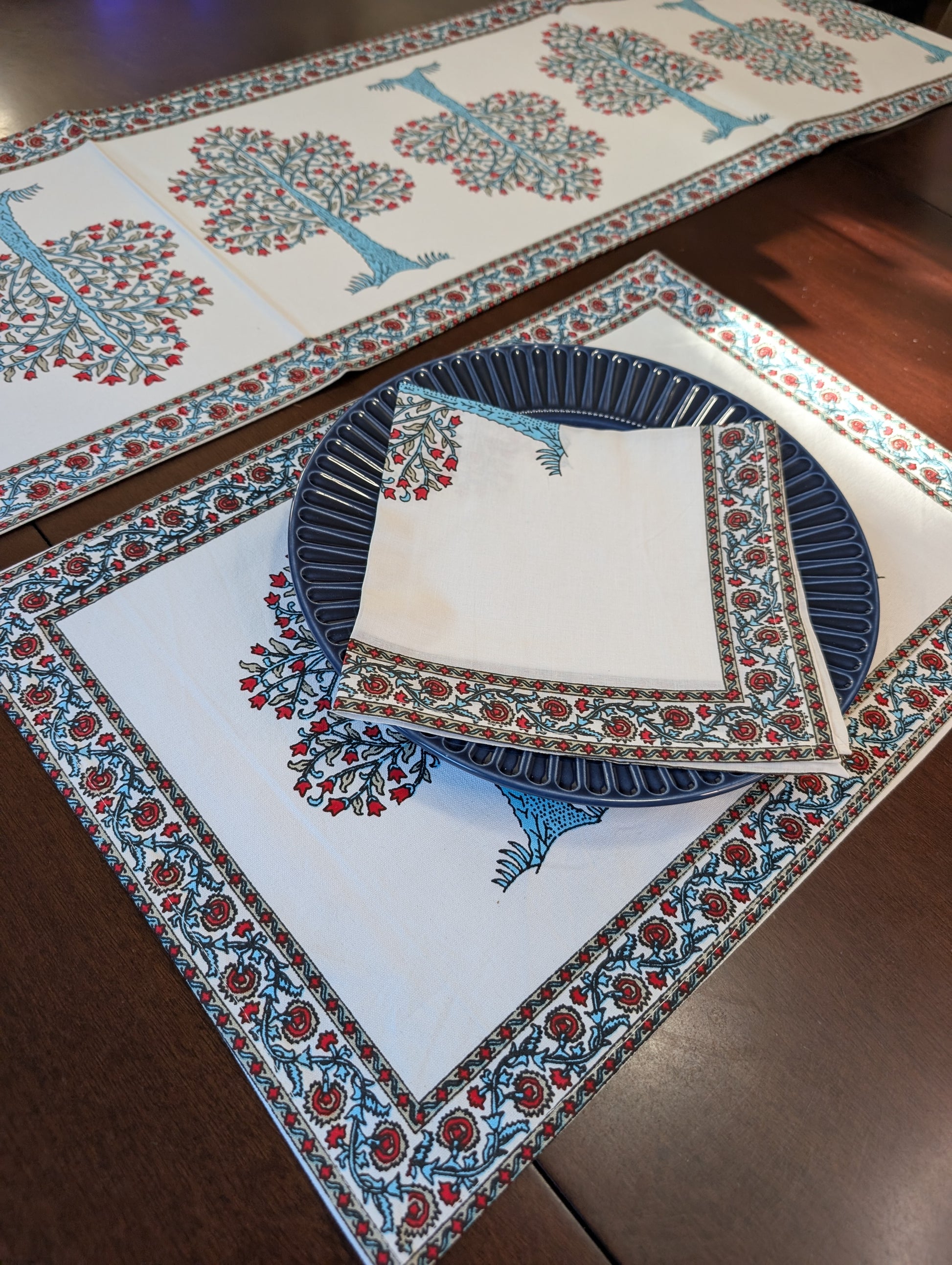 Host your friends and family in style with with table linens in inviting prints. Each piece is handmade and handprinted making it one of a kind!