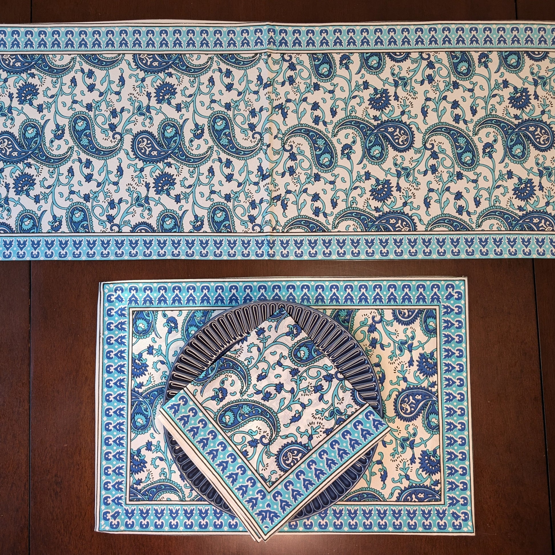 Blue Indian Paisley Block-Printed Table Linen