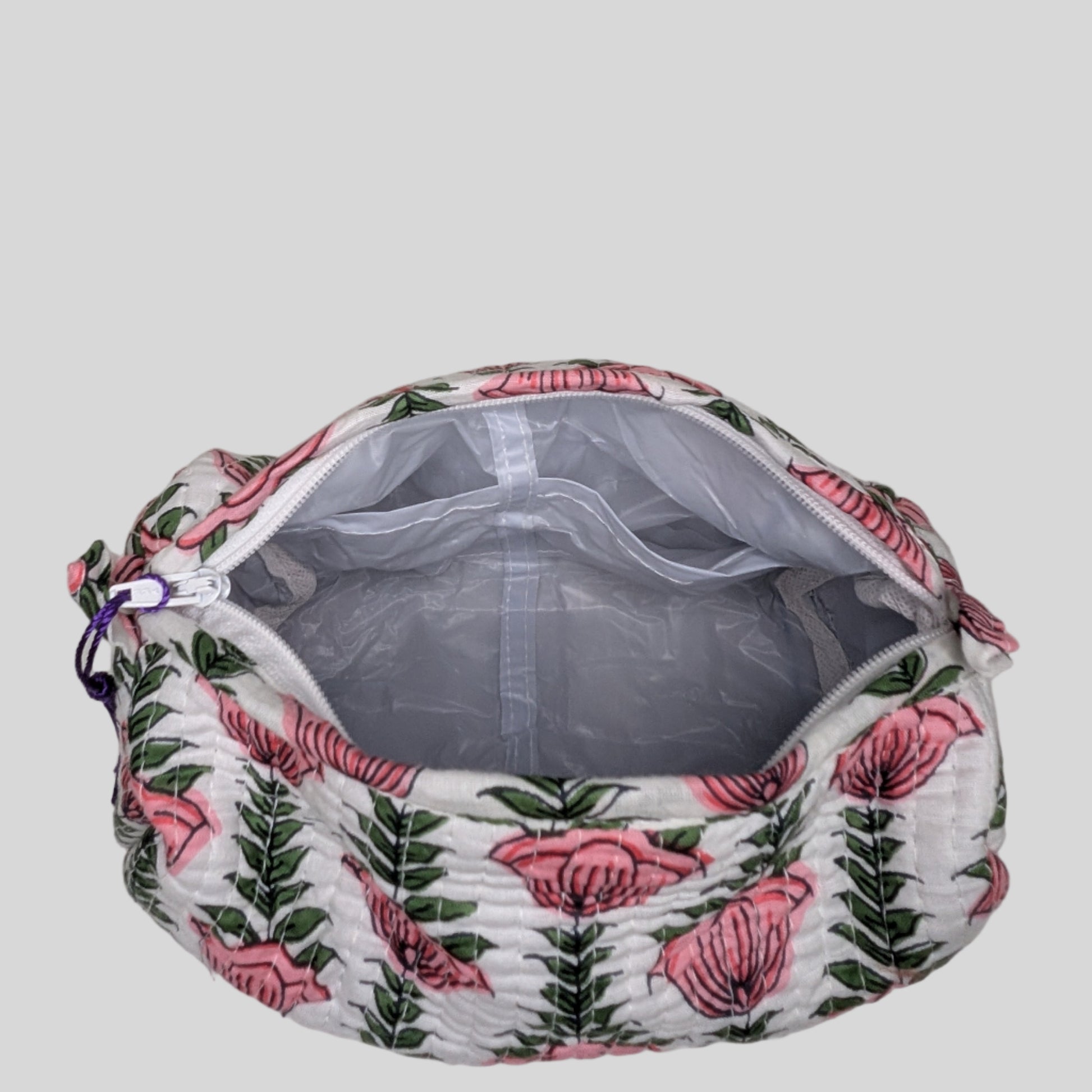 This toiletry bag allows you to carry as many items as you can fit in it. With a zippered closure and a waterproof lining with pockets inside, it helps you carry make-up and essentials when you're traveling, commuting, or going to work.