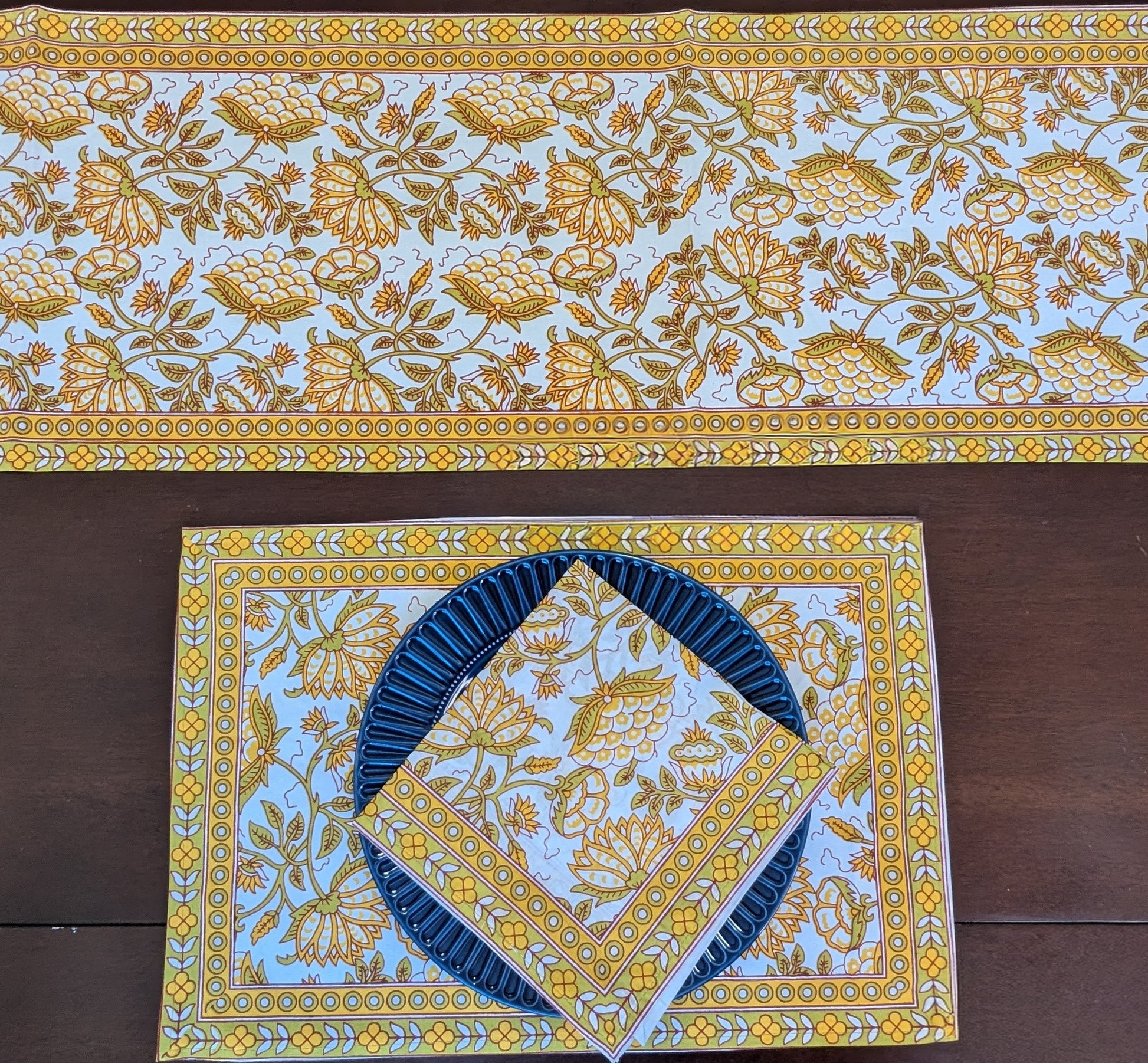 Mustard Floral Block-Printed Table Linen