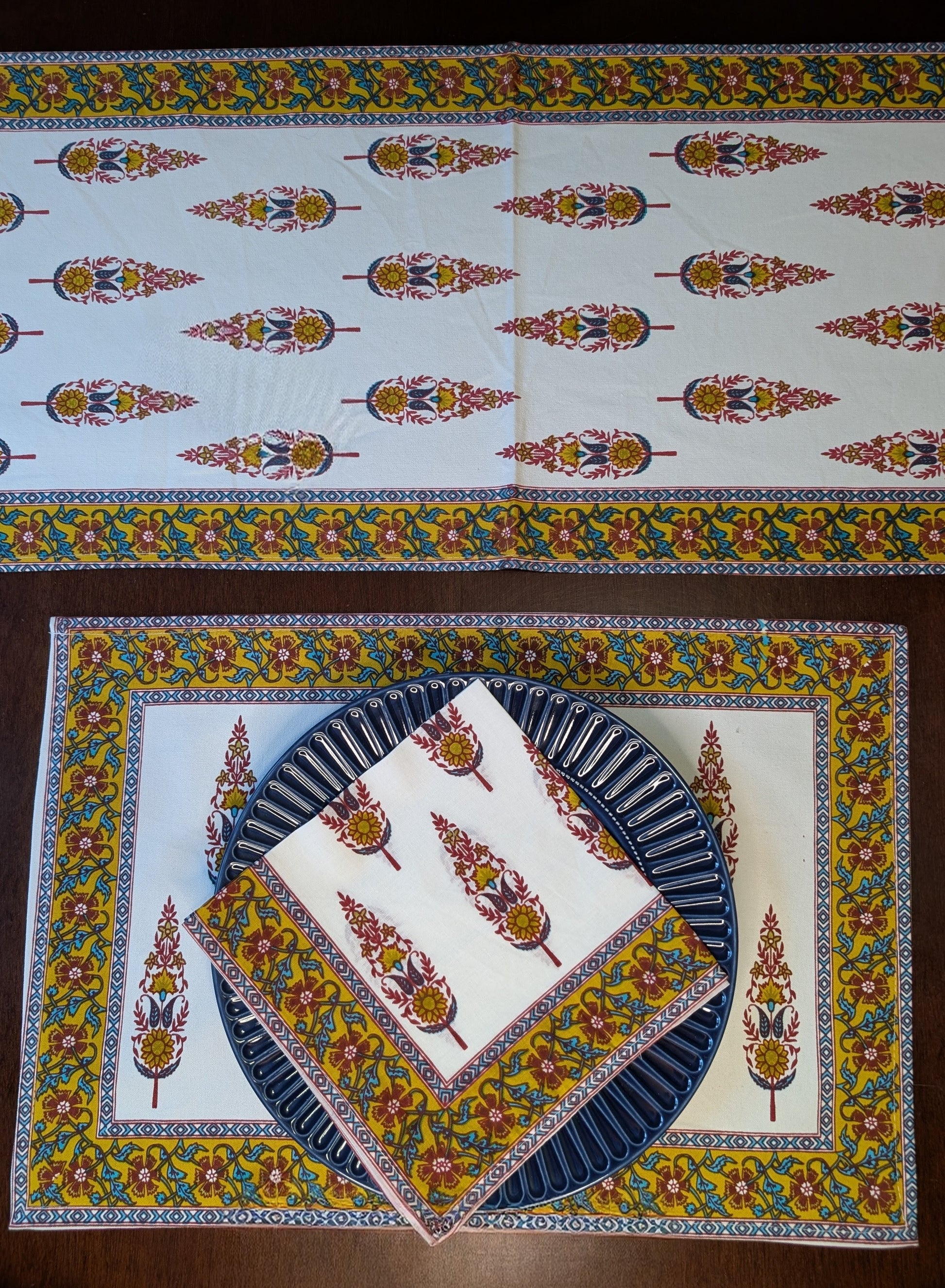 Host your friends and family in style with with table linens in inviting prints. Each piece is handmade and handprinted making it one of a kind!