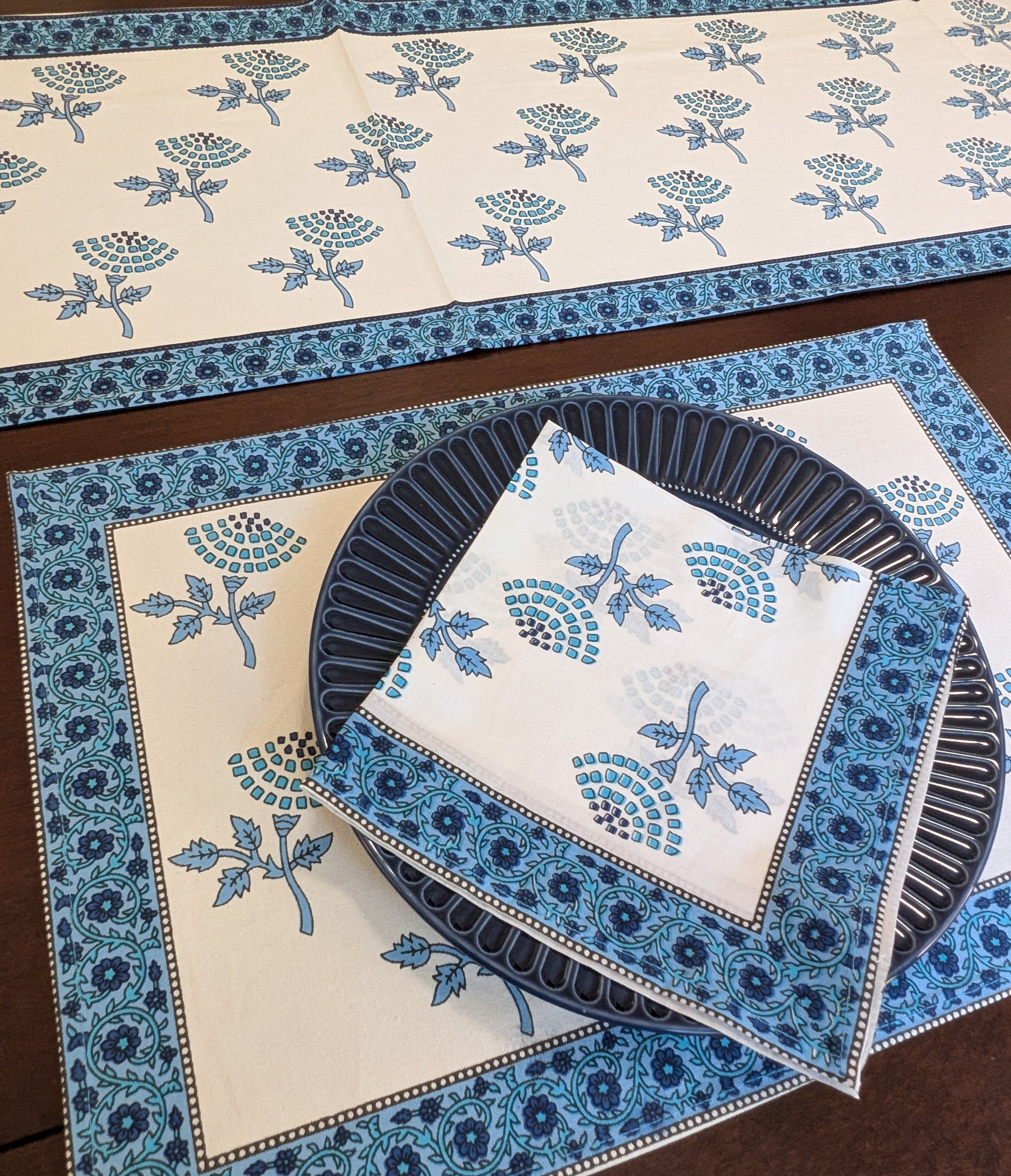 Host your friends and family in style with with table linens in inviting prints. Each piece is handmade and handprinted making it one of a kind!