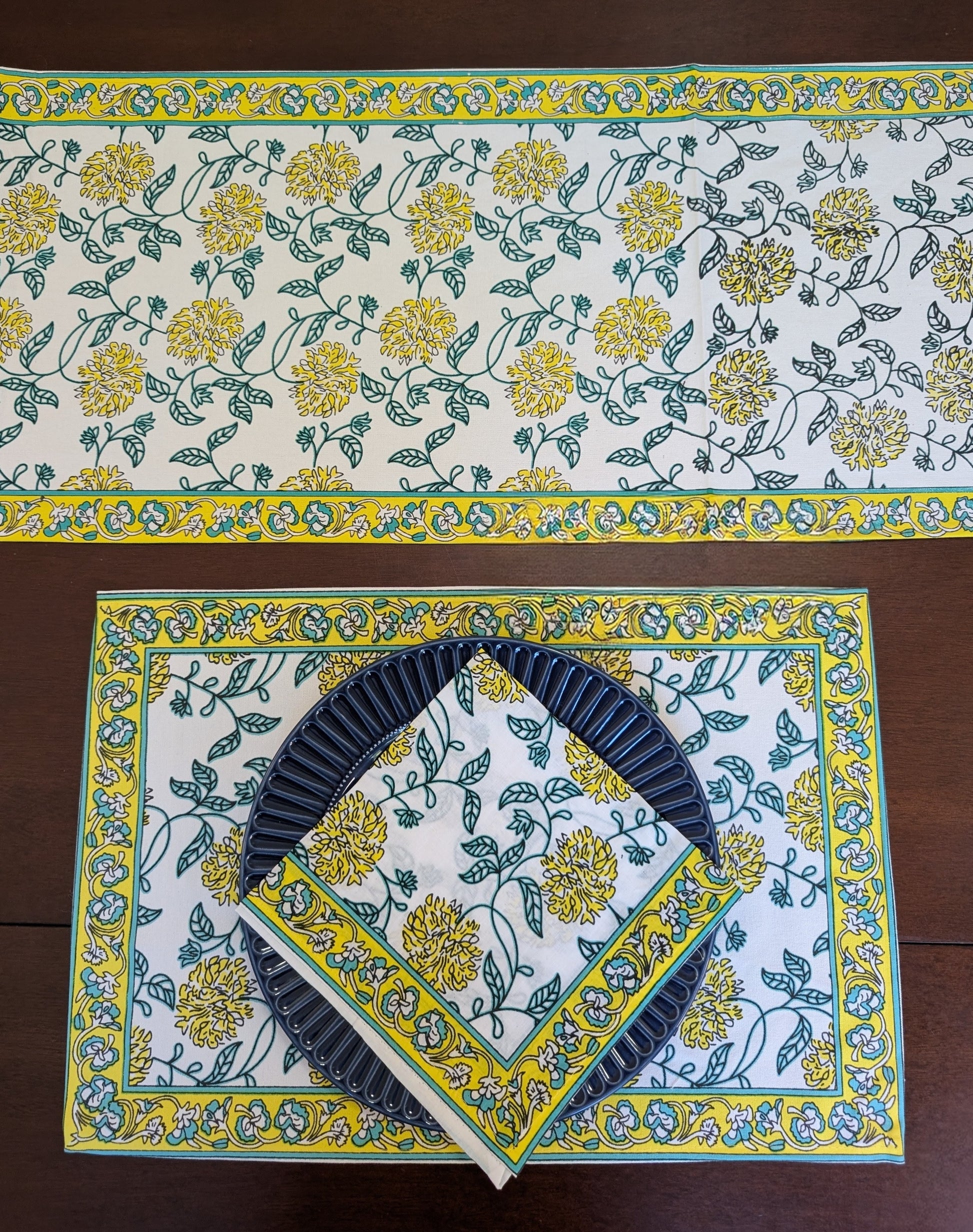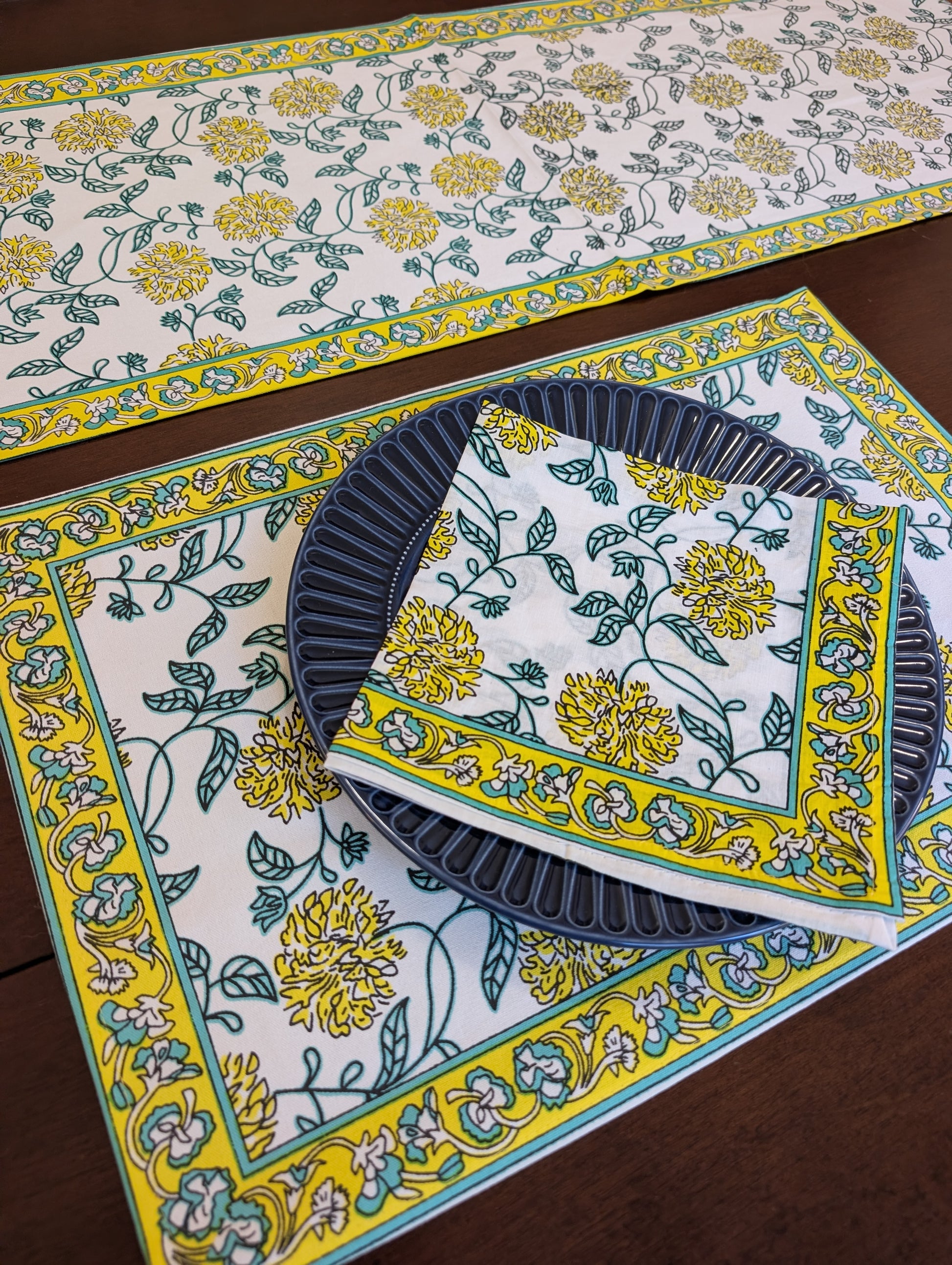 Yellow Marigold Block-Printed Table Linen